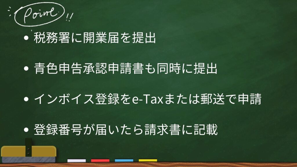 独立直後にまとめて全部済ませると、その後の請求書作成や確定申告がスムーズです。