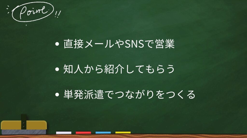 慣れるまでは大変だけど、ここを越えると一気に案件が広がっていきます。
